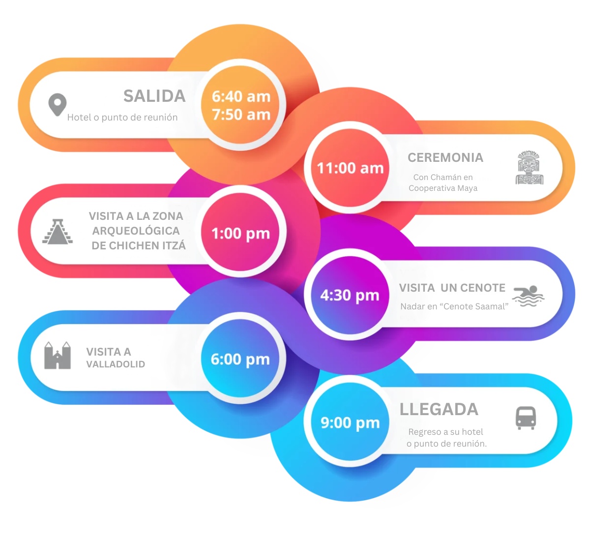 En este tour, realizaremos una breve parada en la pintoresca ciudad de Valladolid, Yucatán, fundada por los conquistadores españoles en 1543. En este encantador lugar, se encuentra la increíble Catedral de San Servacio, construida con materiales provenientes de una edificación maya, lo que resalta la fusión de dos culturas distintas a lo largo de la historia.